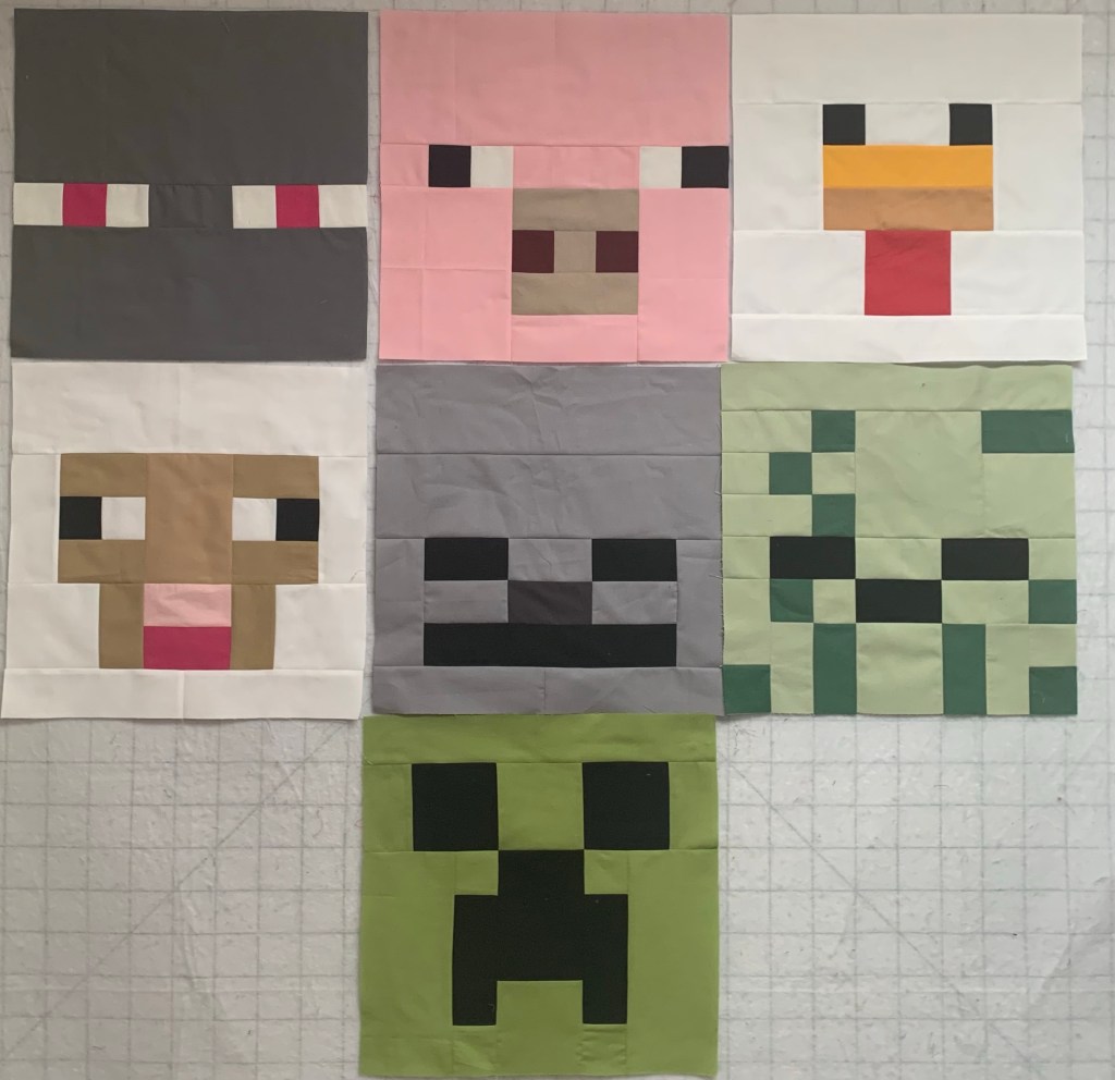 Remember back when I made this Minecraft quilt? That was for Big L. Now I’m making another for E2. I’m not sure my colors are quite right this time, but I’m working from stash.