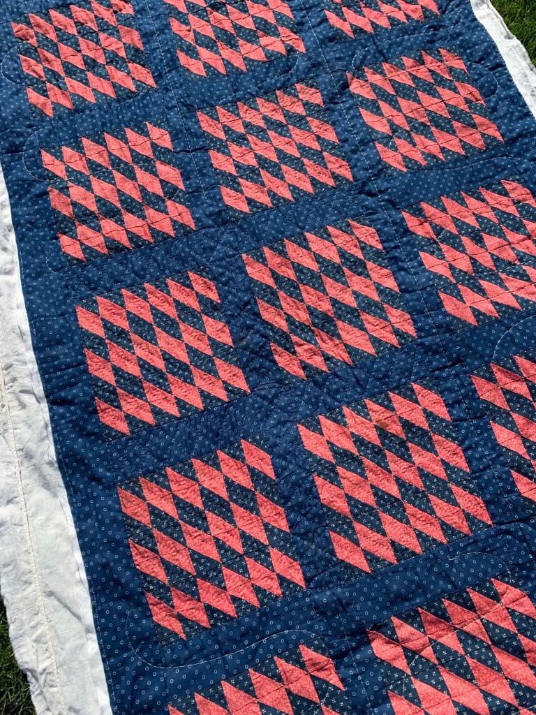 i think it looks wonderful. here’s an idea for the seam on the back. make your label (for the quilt) and applique it over the mistake. if that doesn’t work why not cover it with a blue or red strip to cover. just random thoughts that hit me. you know i love your stuff. hugs. patti in florida