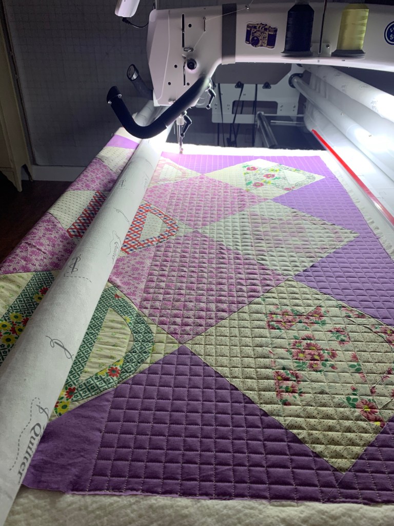 I just love all your quilts!!! I am a hand quilter or domestic sewing machine quilter. But I DO LOVE the crosshatch you did on your basket quilt!!!