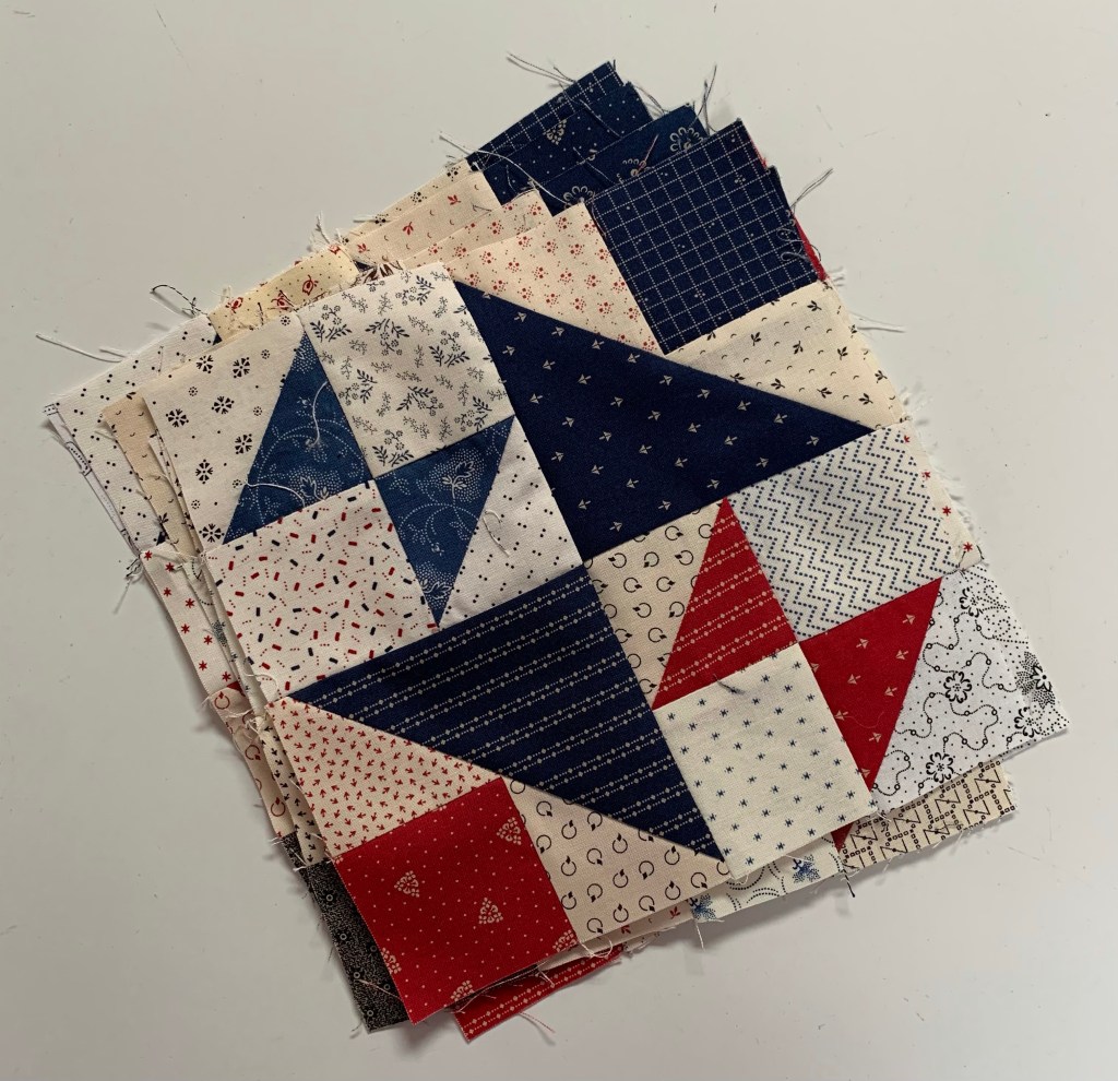 Your blocks look great! I had to laugh that you made yours bigger because you had pieces that would work for that size. I made mine smaller for the same reason. 🙂