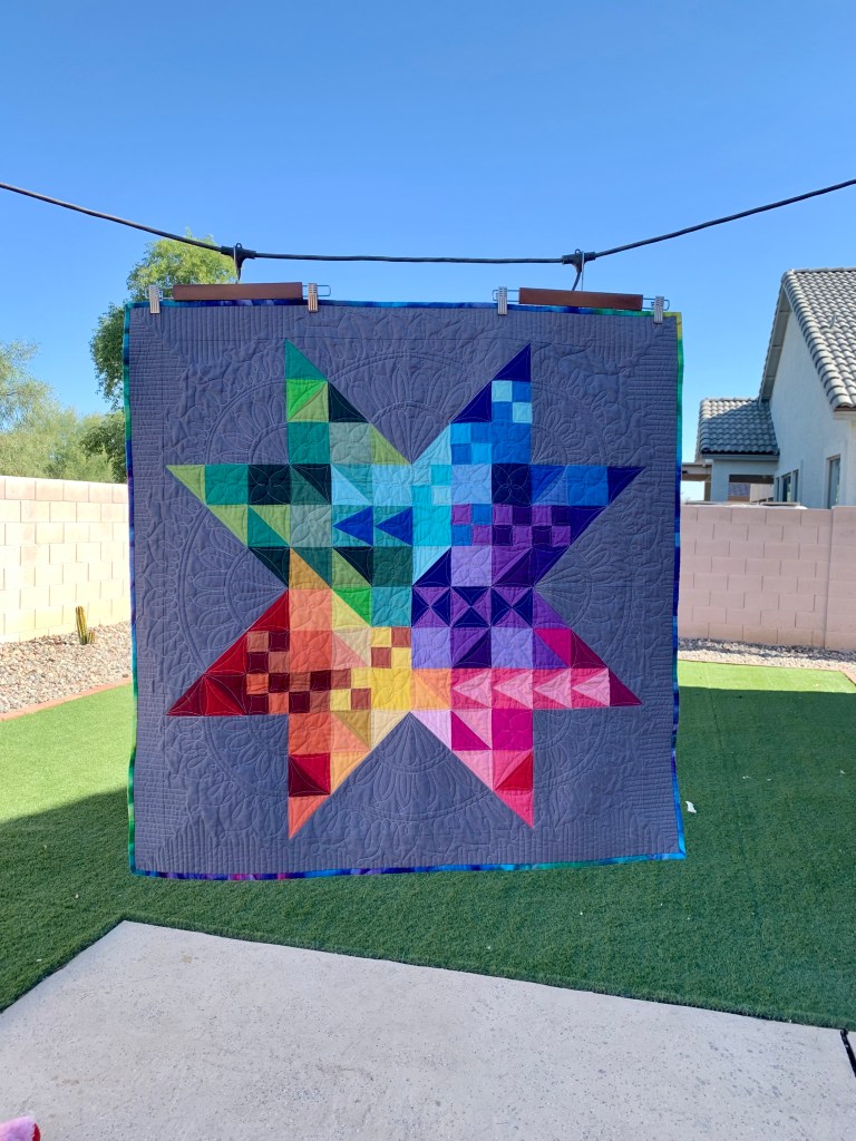 Beautiful quilt and the quilting looks amazing to me. I’m taking notes! Ha!