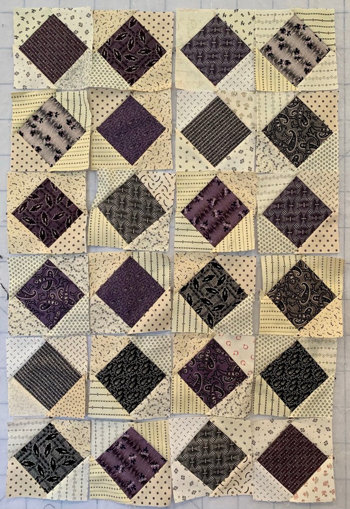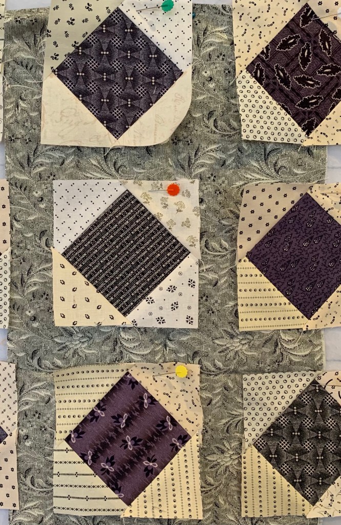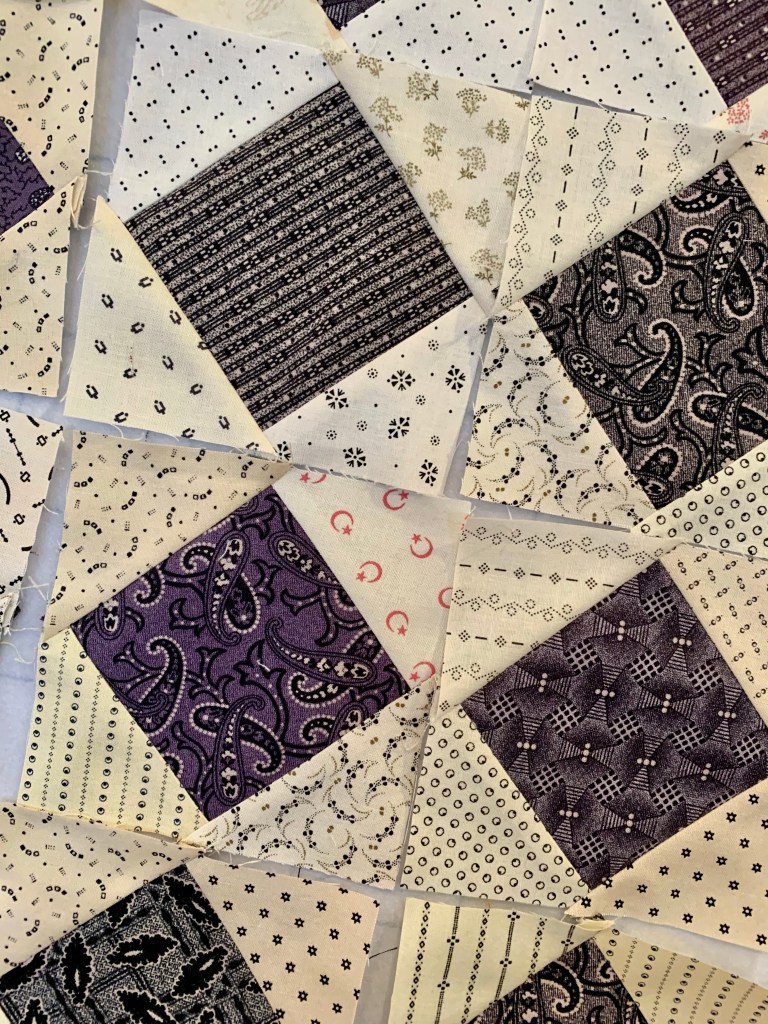 This is really talking to me. Love everything about it. As to a name, what comes to mind is not something you would want to assign to such a pretty little quilt, but the colors make me thing of the mourning prints of a century or so ago. But who would want a quilt named “Mourning”??