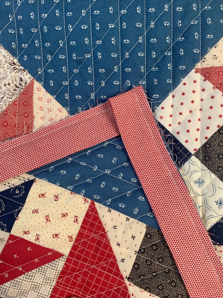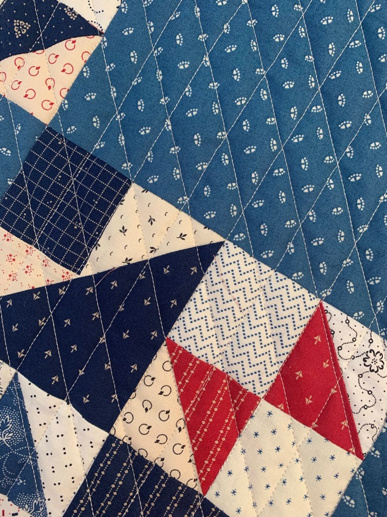 I wanted to get this done and quilted so I could hang it in my family room here. Hanging diamonds seemed the perfect quilting design.