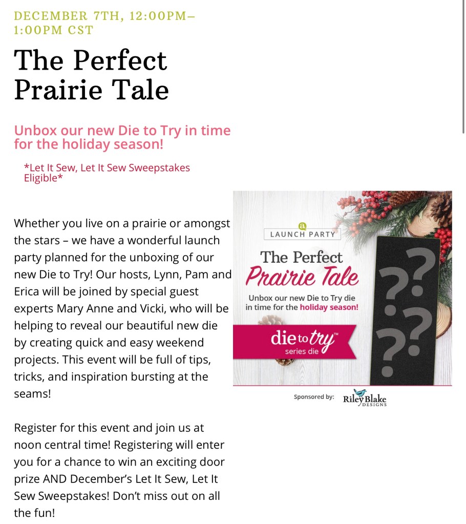 I also wanted to let you know about the Accuquilt Live program tomorrow.