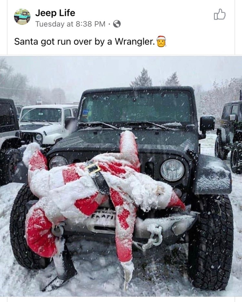 easy decorating but effective. that’s alot of stockings on the railing. i especially like how you decorated ‘jack’ and that you didn’t forget him. the jeep pic cracked me up so badly i almost fell out of my chair. thanks tons for the laughs. patti in a dreary looking florida
