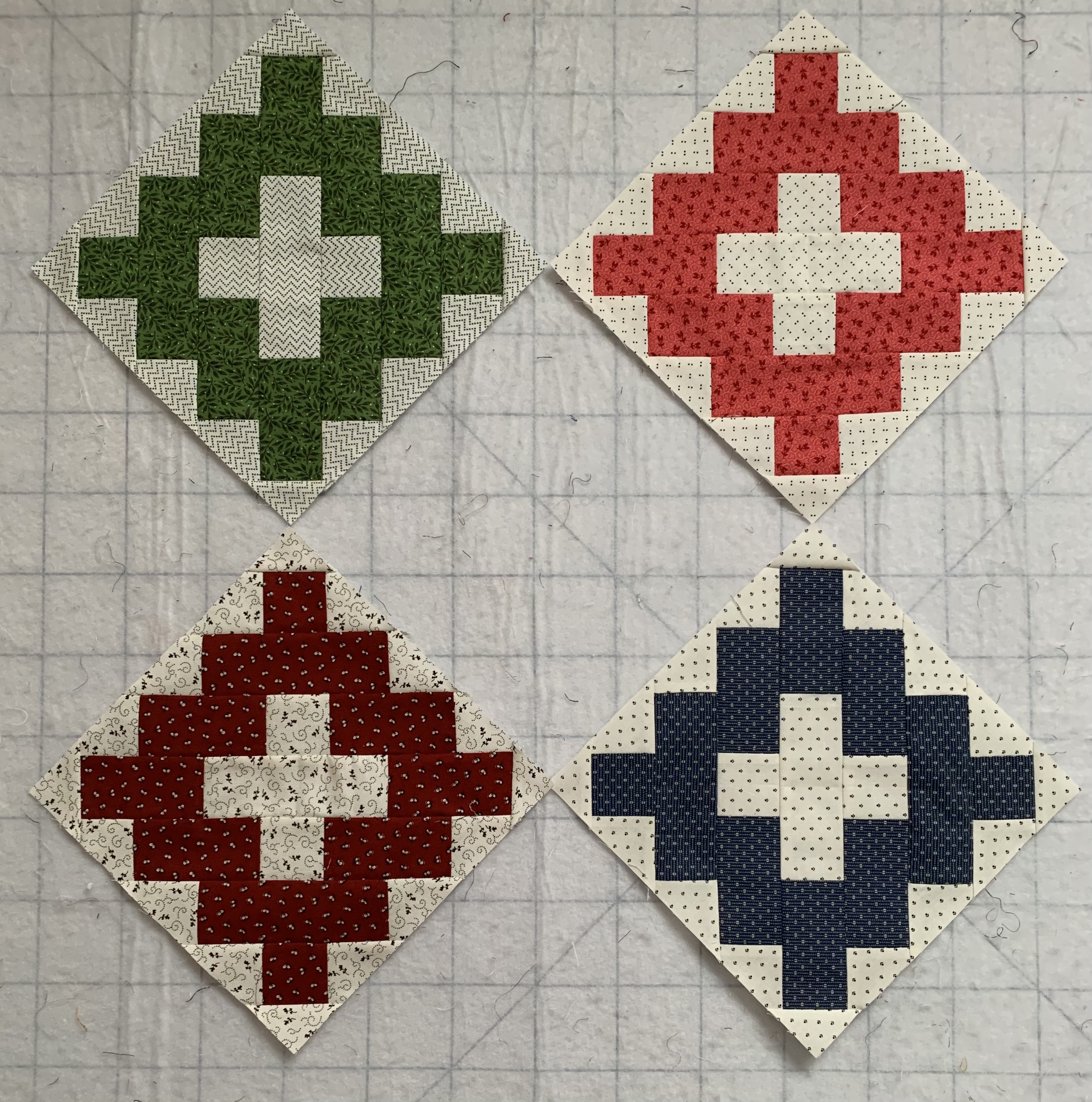 9. I pieced these four blocks ages ago and then didn’t do anything with them. Maybe this year. Done!