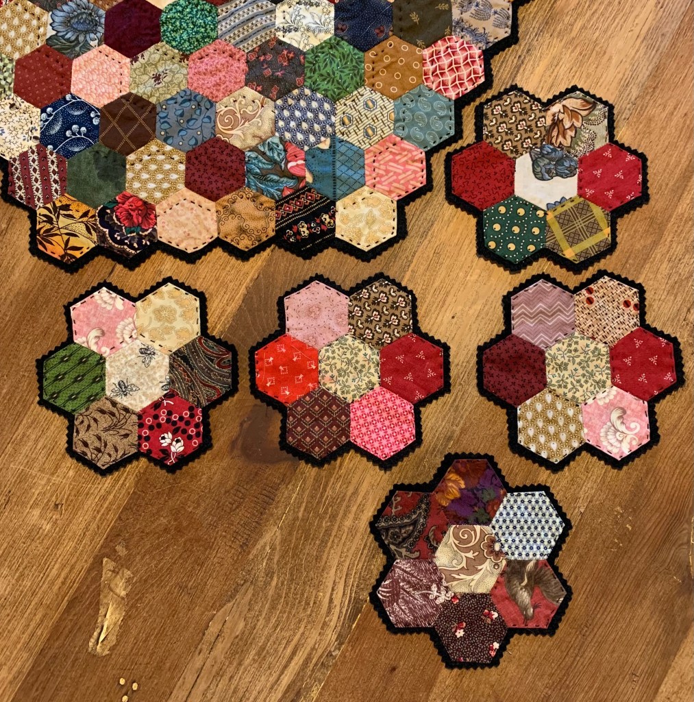 These got turned into a table topper and coasters.