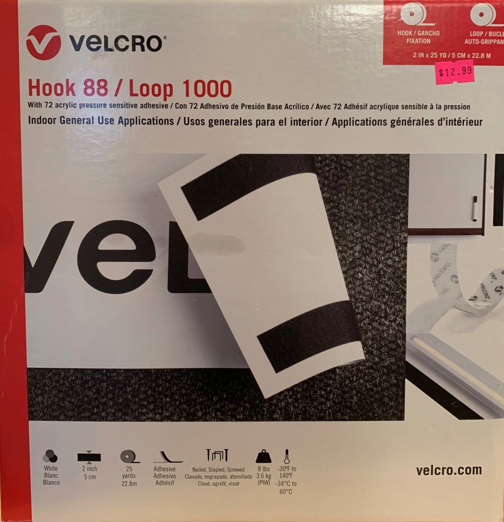 Next I added two inch wide strips of Self Adhesive Velcro to the trim pieces on the wall and on the back of my foam sheets.