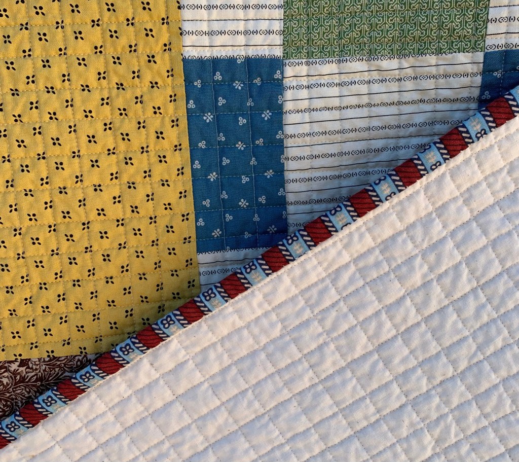 This quilt is wonderful! The quilting is perfect for it! Do you happen t0 know the information on the stripe fabric you used for the binding? I love a good stripe for binding!! Thanks!