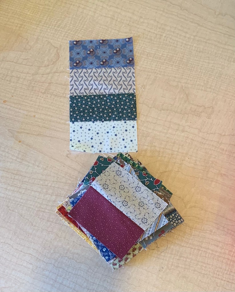 I’ve made a fair amount of progress on my leader/ender project. I started by piecing them into pairs, then into foursies.