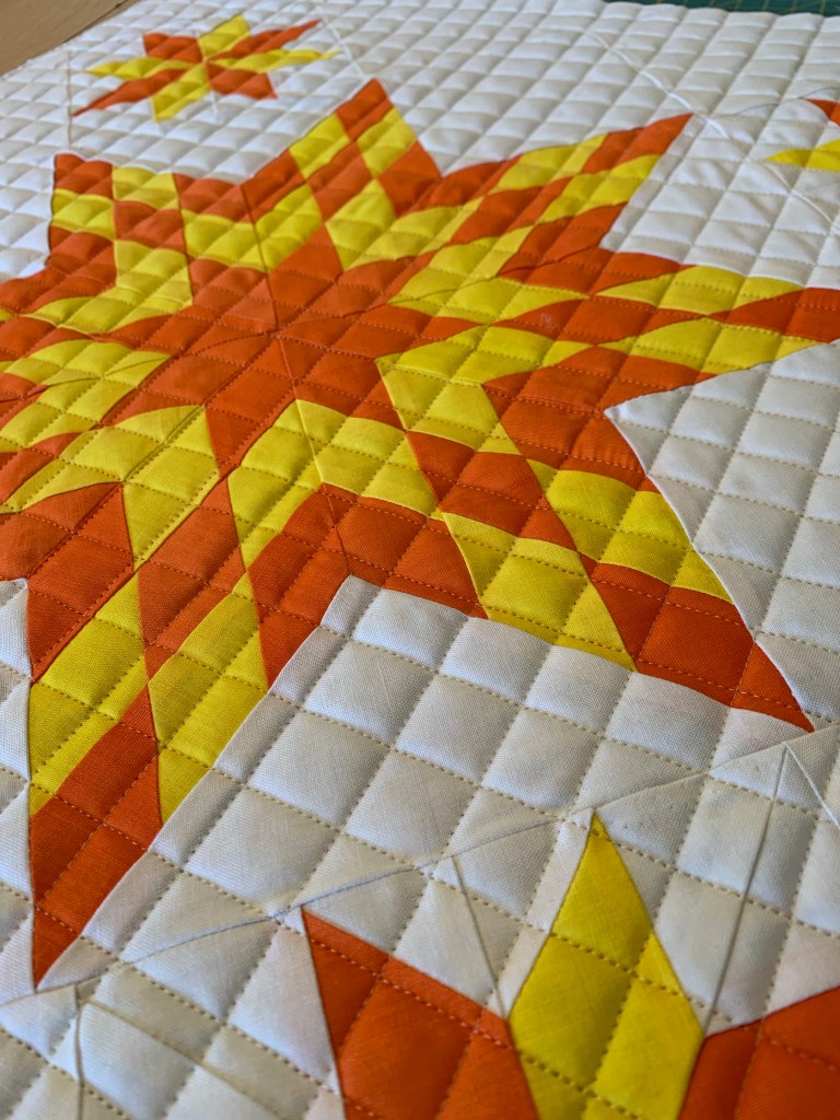 Then I finally got it in the frame and quilted with a simple cross hatch.