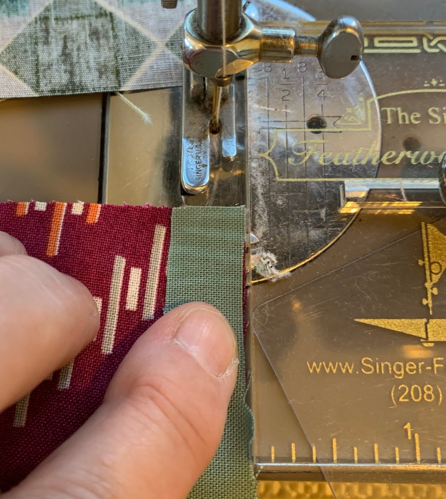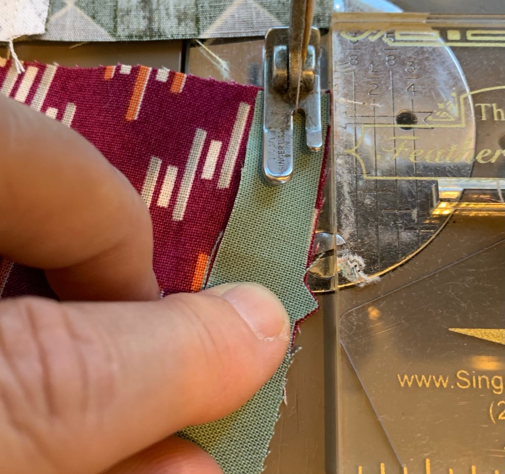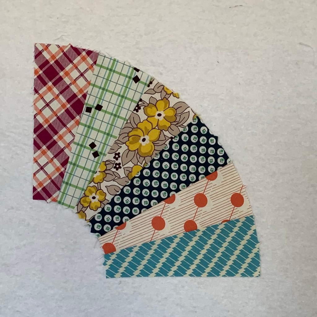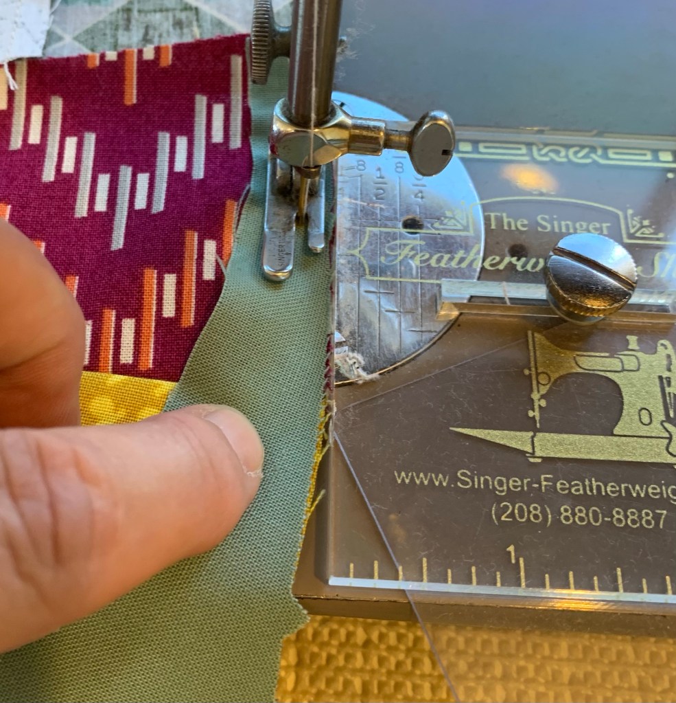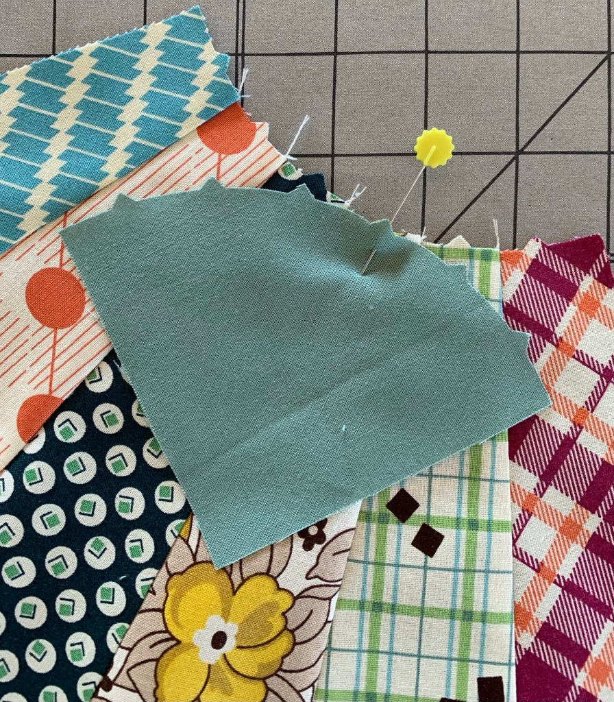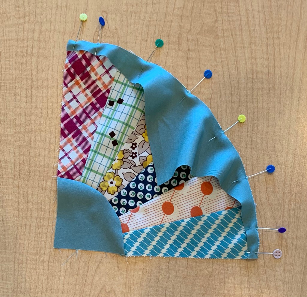 For the next block, I skipped the pins altogether. I lined up the pieces at the beginning of the curve and took a few stitches.
