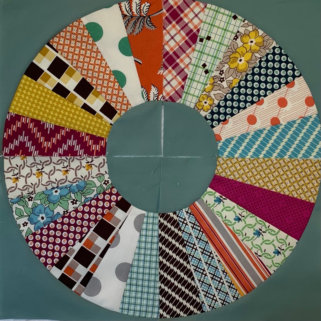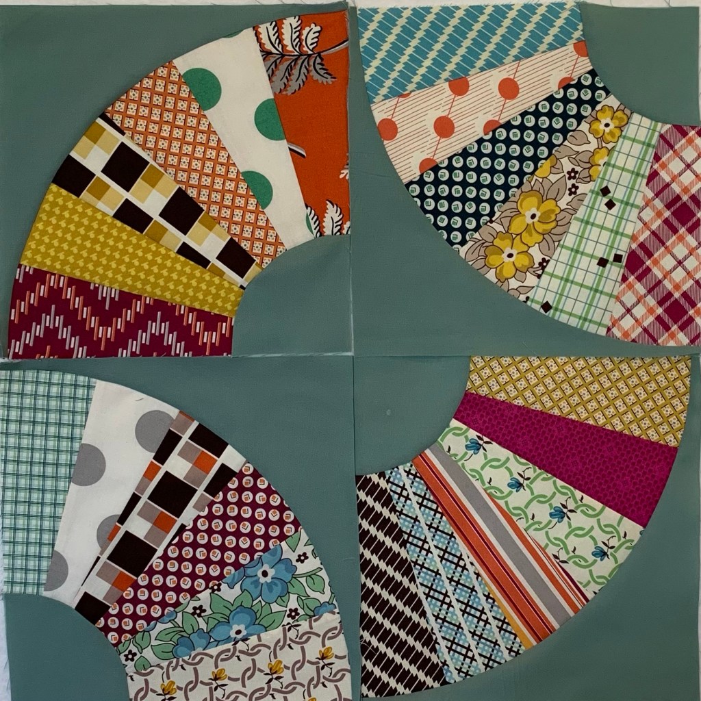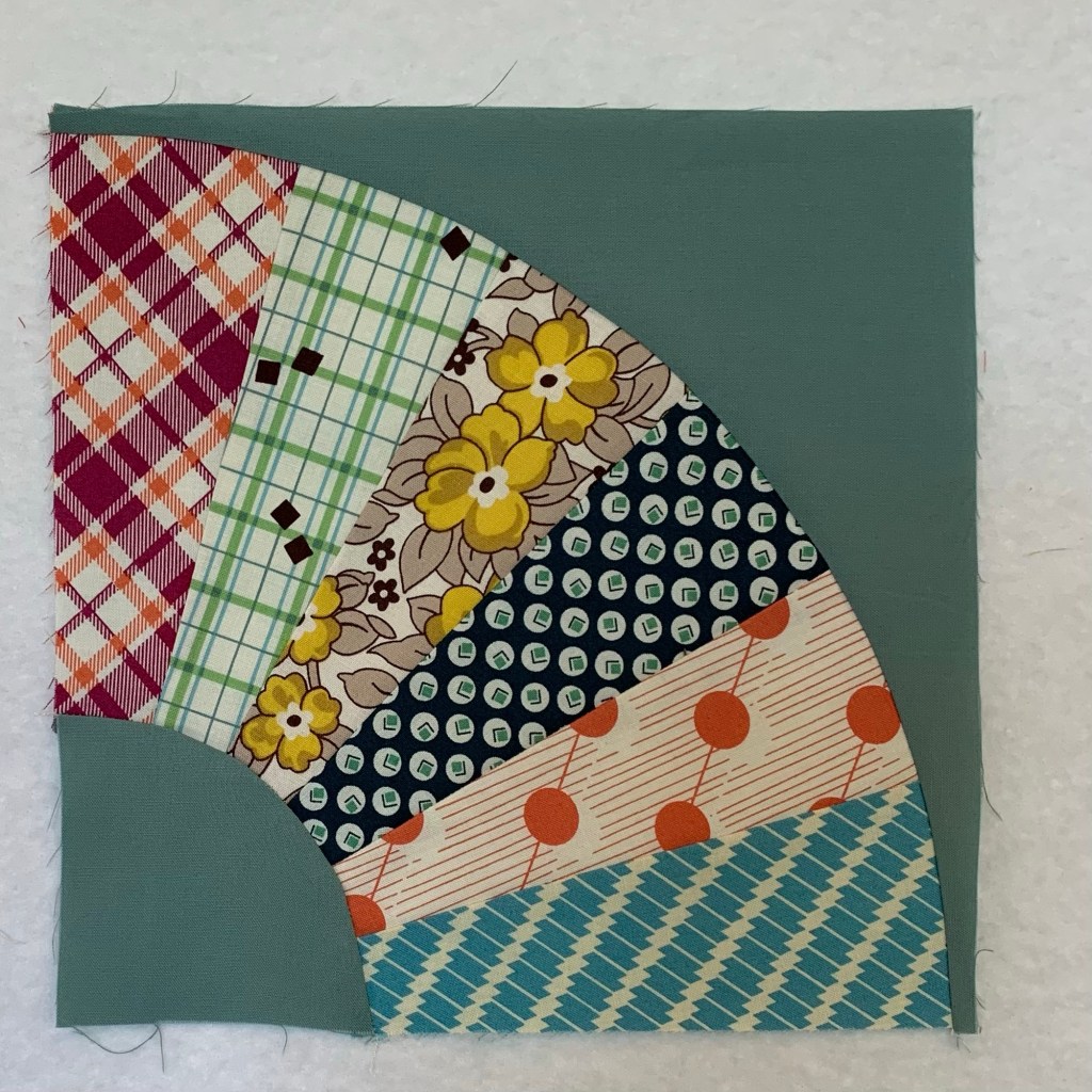 Then you add the little quarter circle piece. These photos show my first time piecing this block. See the little notches? You can pin at the notches to keep everything perfectly aligned.