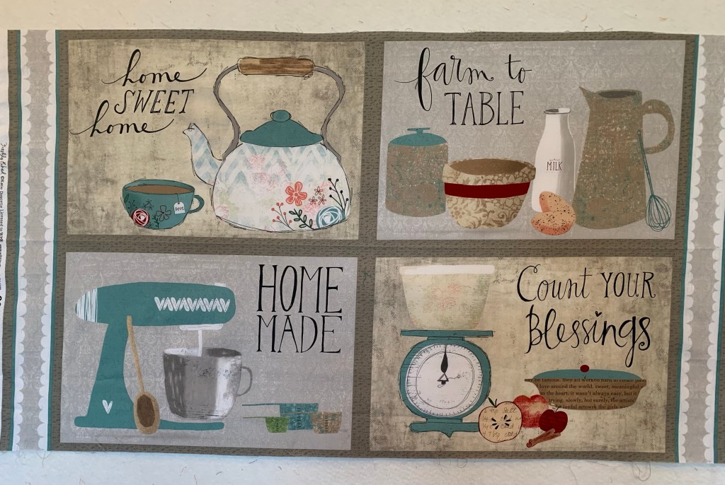 I bought a bag of fabric at Good Will and this was in the mix. I think it’s for placemats. I think I’ll finish them for a gift.