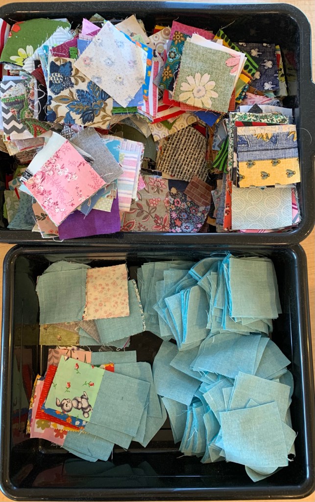It’s been a busy few weeks, but I’m finally getting back to the sewing room. I eased back into things by cutting up the rest of my alternate squares for my leader/ender project.