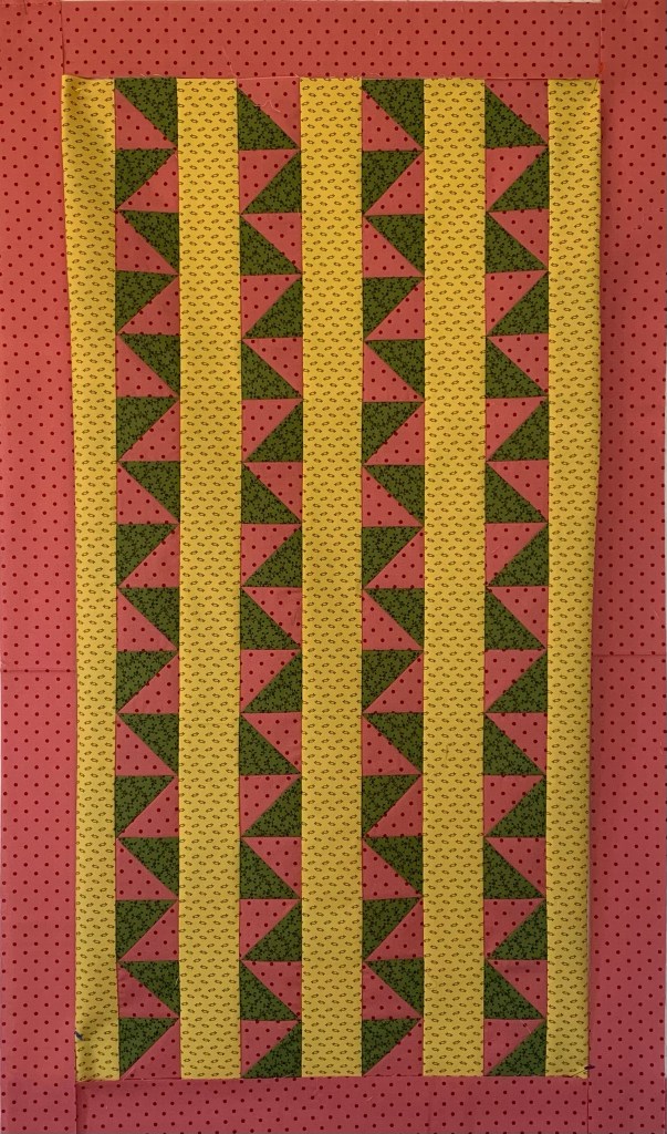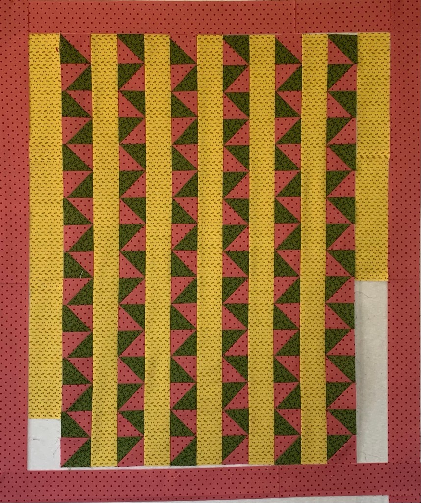 I had some short yellow strips and placed them next to the existing outer columns of triangles. This gives better proportions.