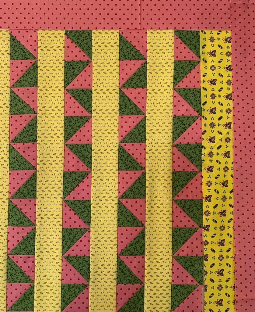 You all are the best! As suggested, I folded back the triangles on each side and put the pink borders back. Yep, that’s what this needed.