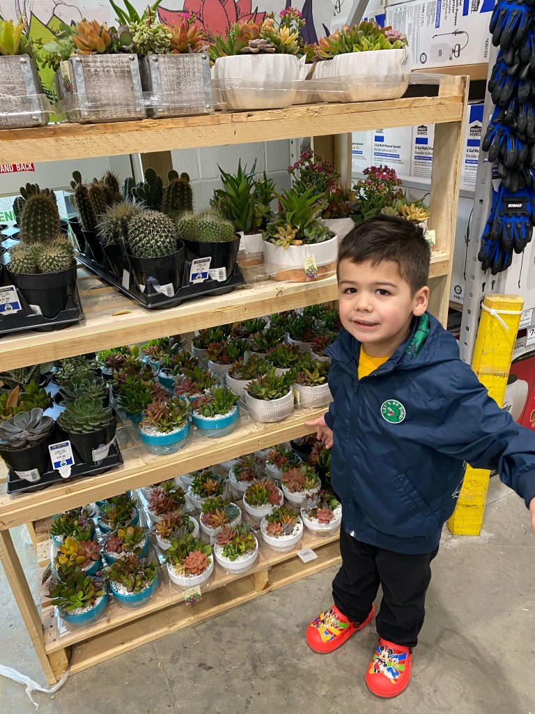 Back in Michigan, Daughter #1 took E3 to the home center. He wanted to show me the cactuses they had there. 😊