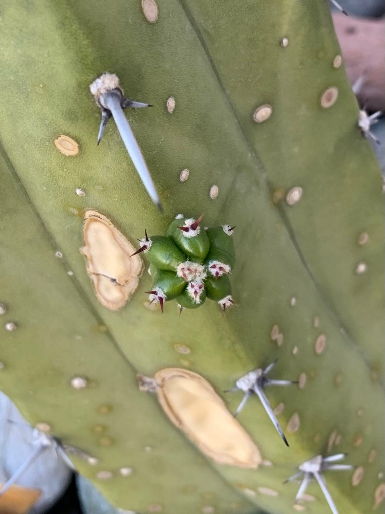 The cactuses that we planted last winter are all doing well. This one is starting to grow a new arm. a few others will be blooming soon.