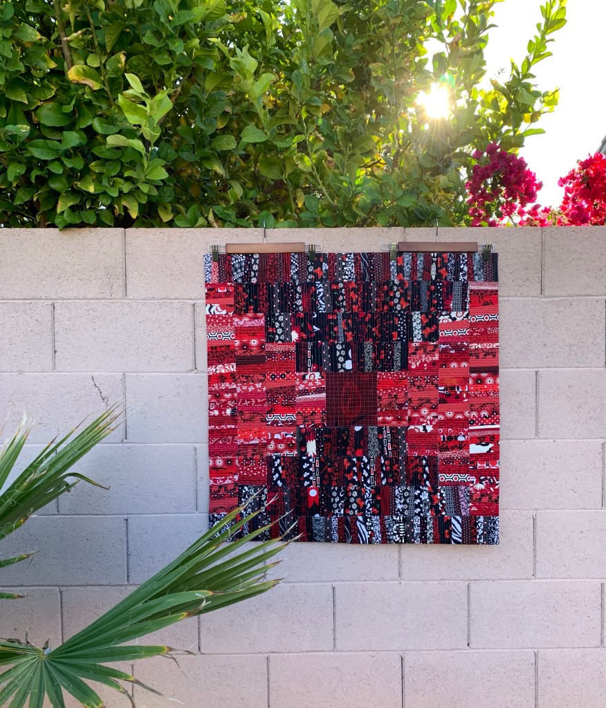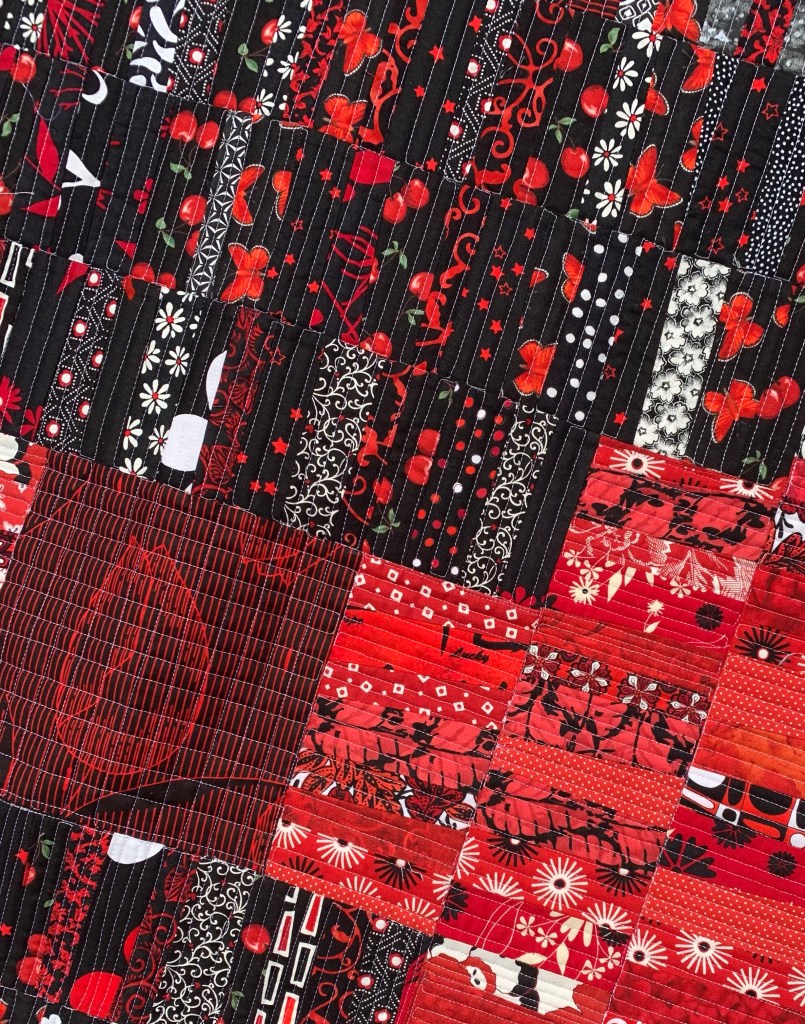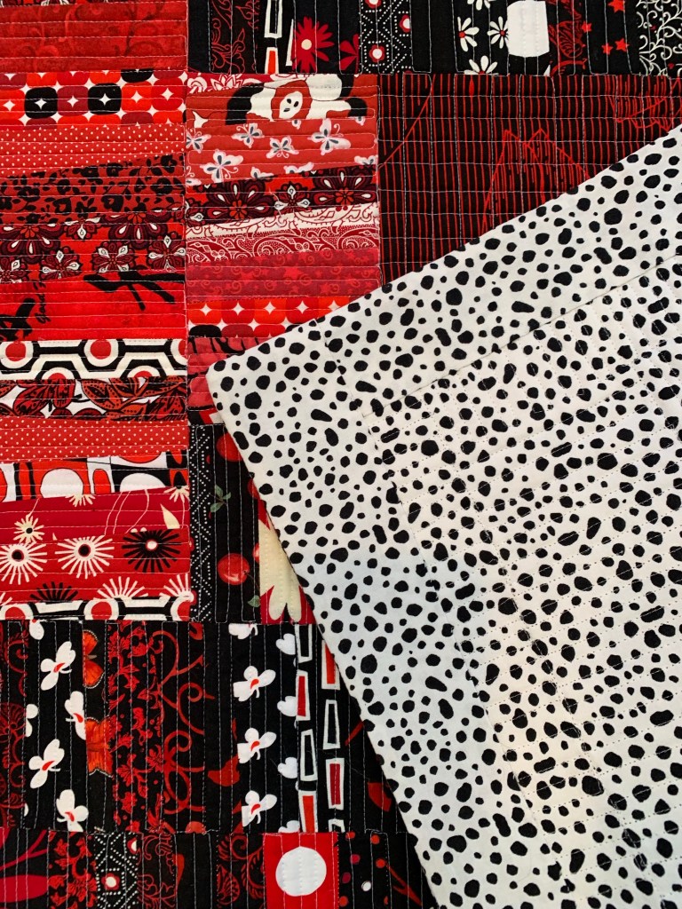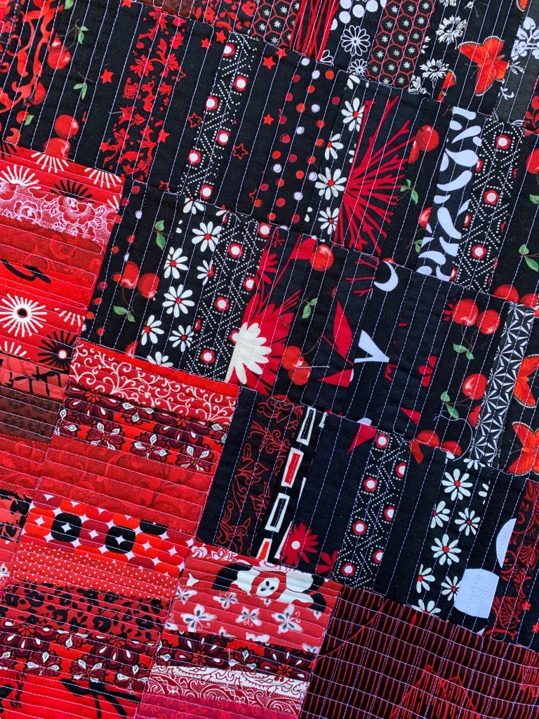 I’m not thrilled with the quilting. Red or black thread would have been better, but I used what I had on hand.