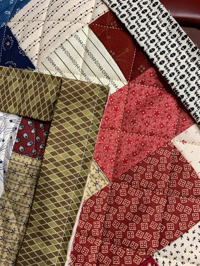 Today I’m bindng the little quilts from Lori’s Steppin’ Out Class.