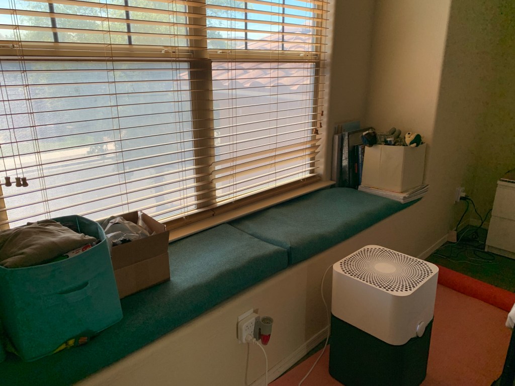 There is a window seat in one of our bedrooms. I love it! I knew as soon as I saw it that I wanted to make cushions for it.
