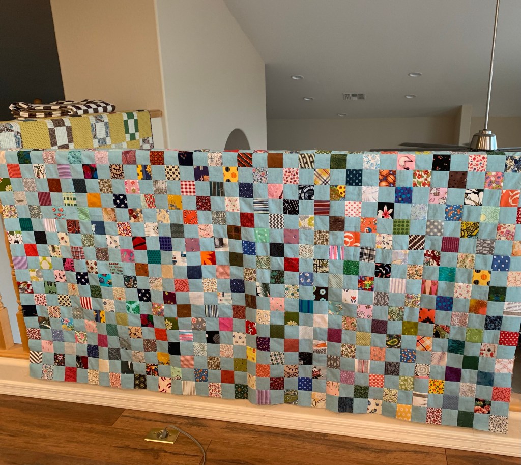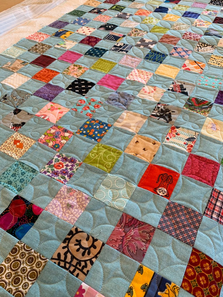 I love your quilt!! The teal mixed with all the colors is wonderful. Hugs,