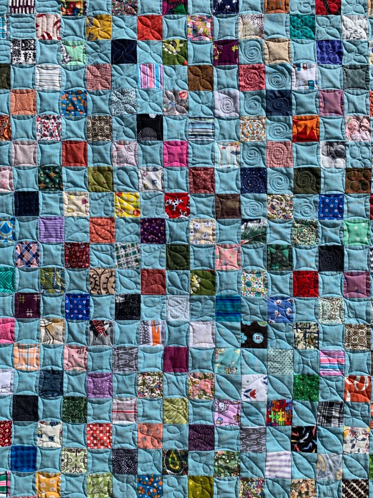 I wasn’t sure about the quilting while I was doing it, but it’s okay. Not fantastic, but good enough for a scrap quilt that I’ll keep for myself.