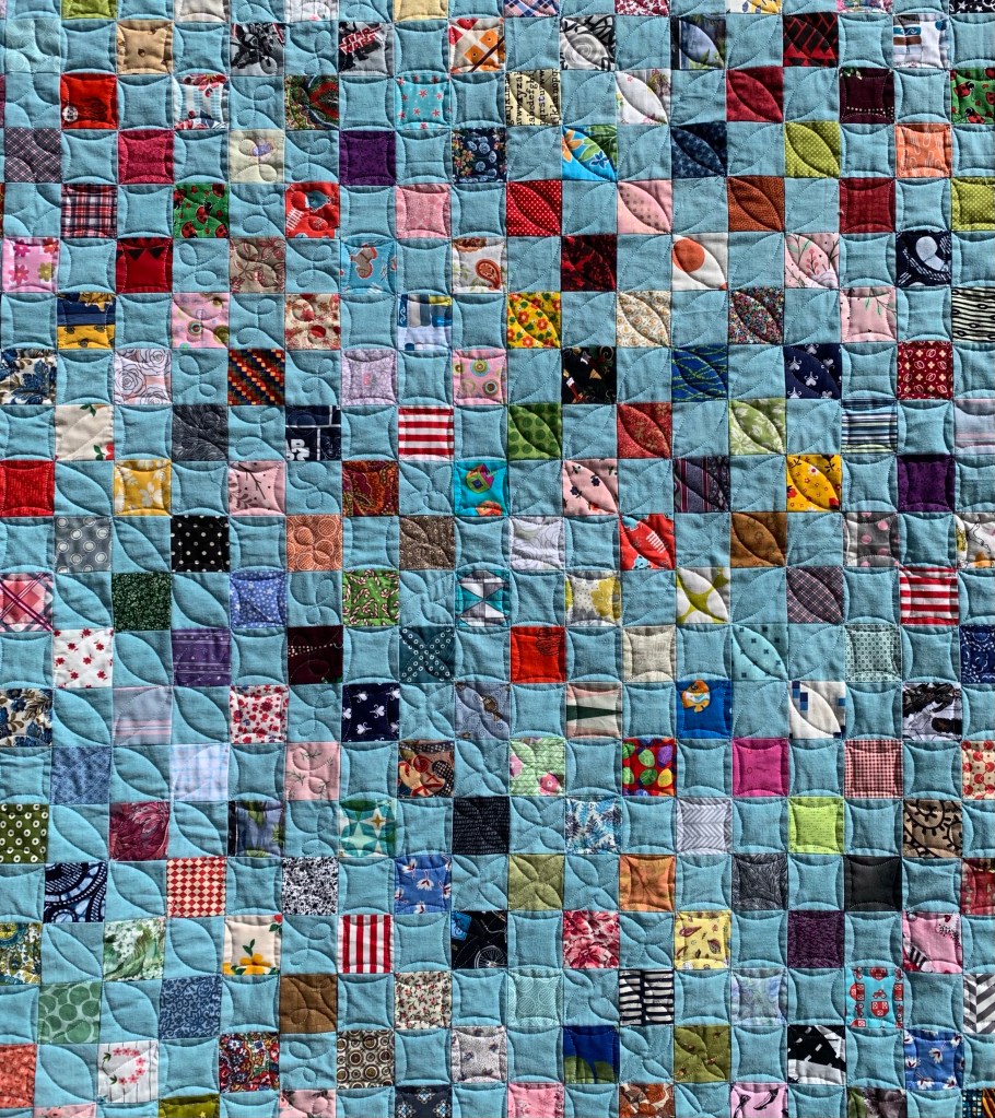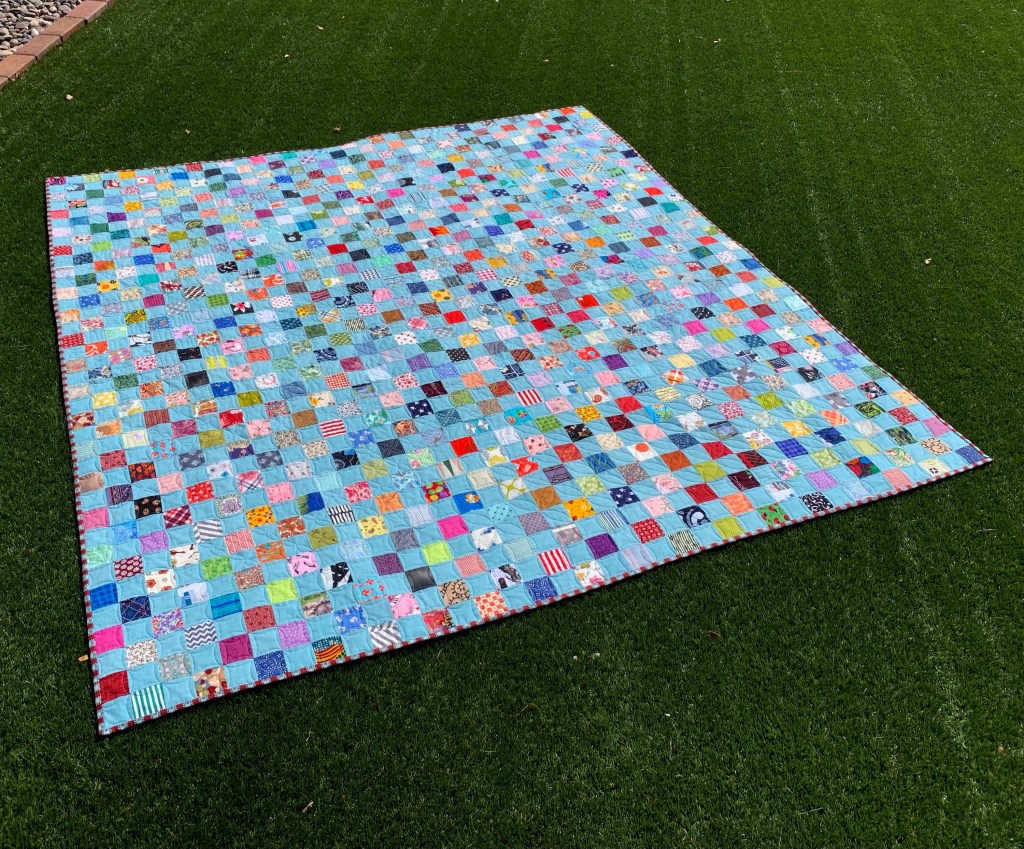 Great finish, and I love that binding! Uffda – that’s a lot of squares!!