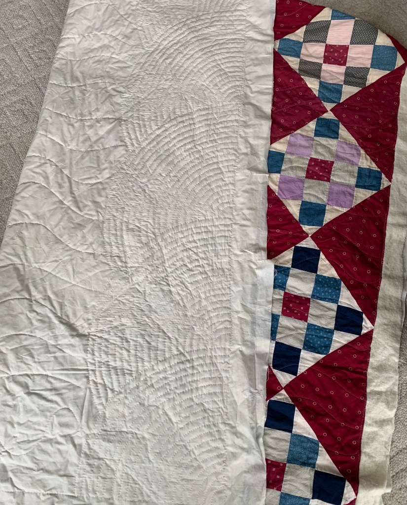 Using white fabric is such a great idea – look at that amazing texture from your hand quilting.