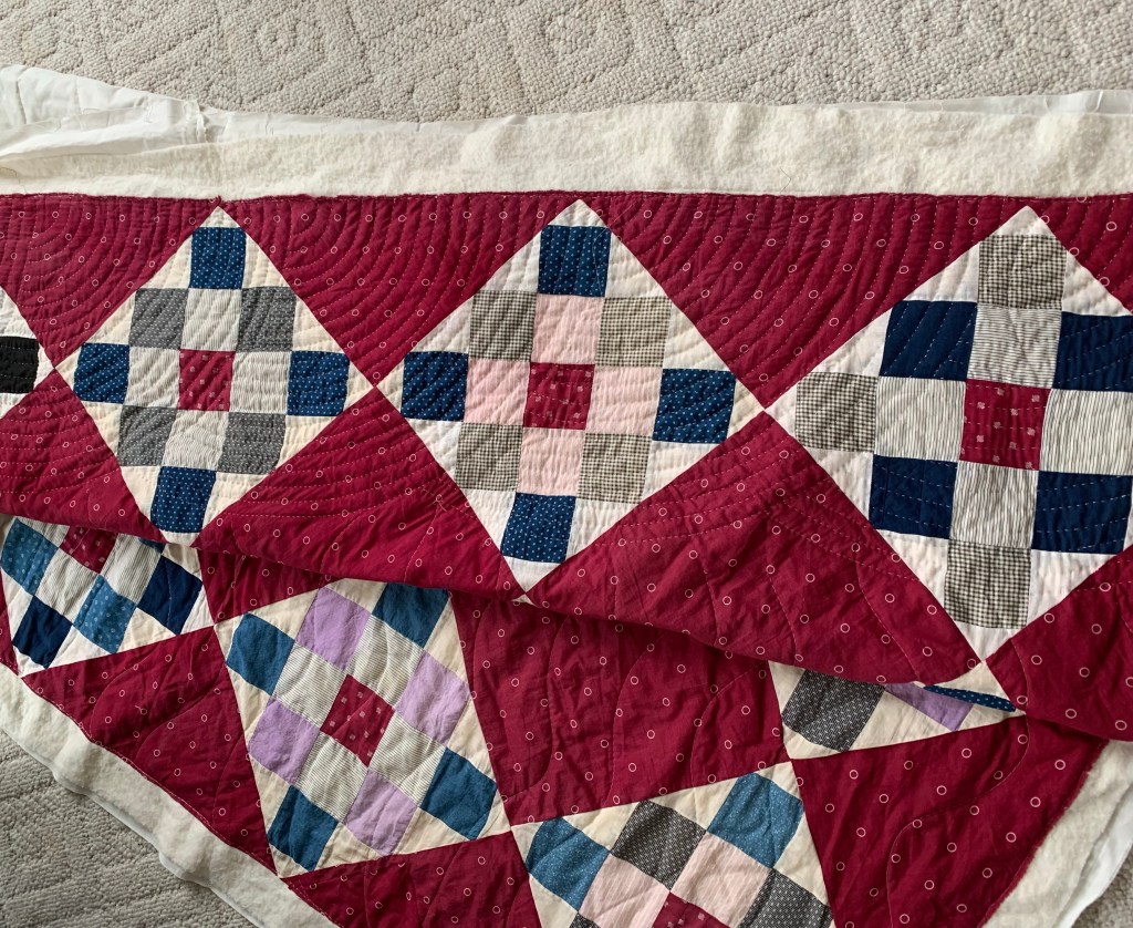 I still love that quilt and the beautiful raspberry colored print in the alternate blocks.