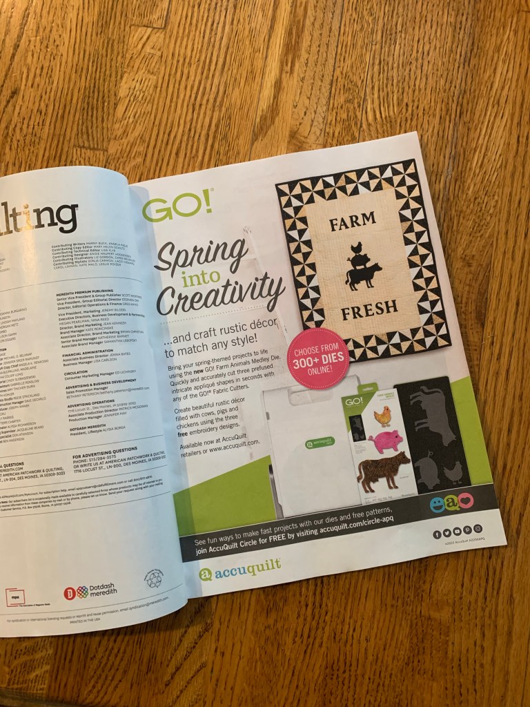 I had to look for your quilt in my magazine! That’s cool! And it is such a cute quilt!
