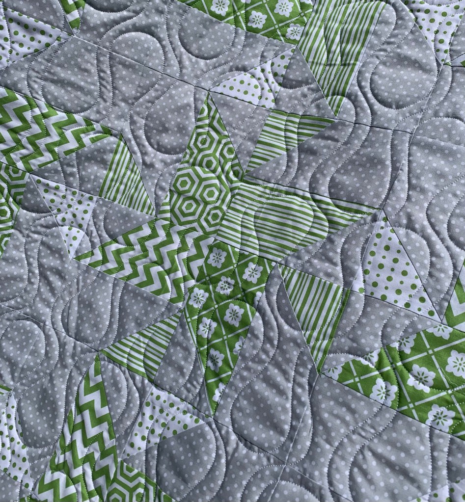 Congratulations on your finish. Some baby will love it. I like the quilting design, too. You said the design isn’t what you had in mind due to a cutting mistake. Will you try again? I’m curious to see what you’d originally planned.