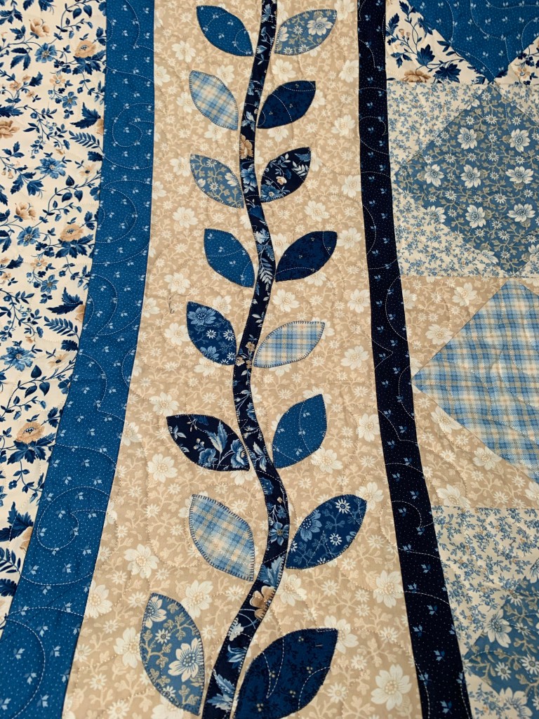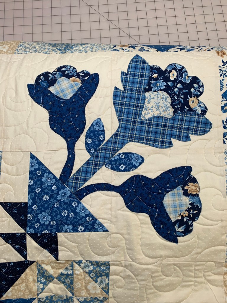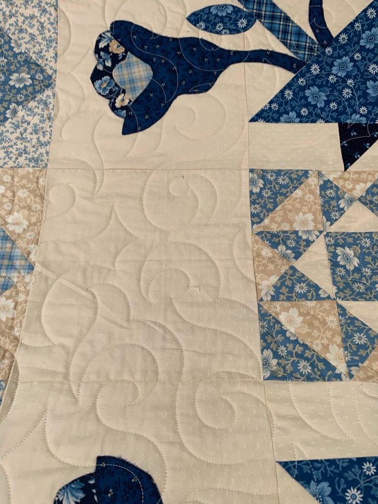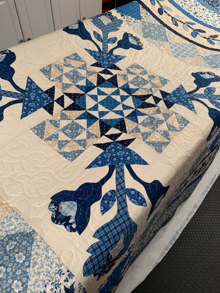 Beautiful quilt!! Your quilting is wonderful. I love the different blues in the quilt. Hugs,