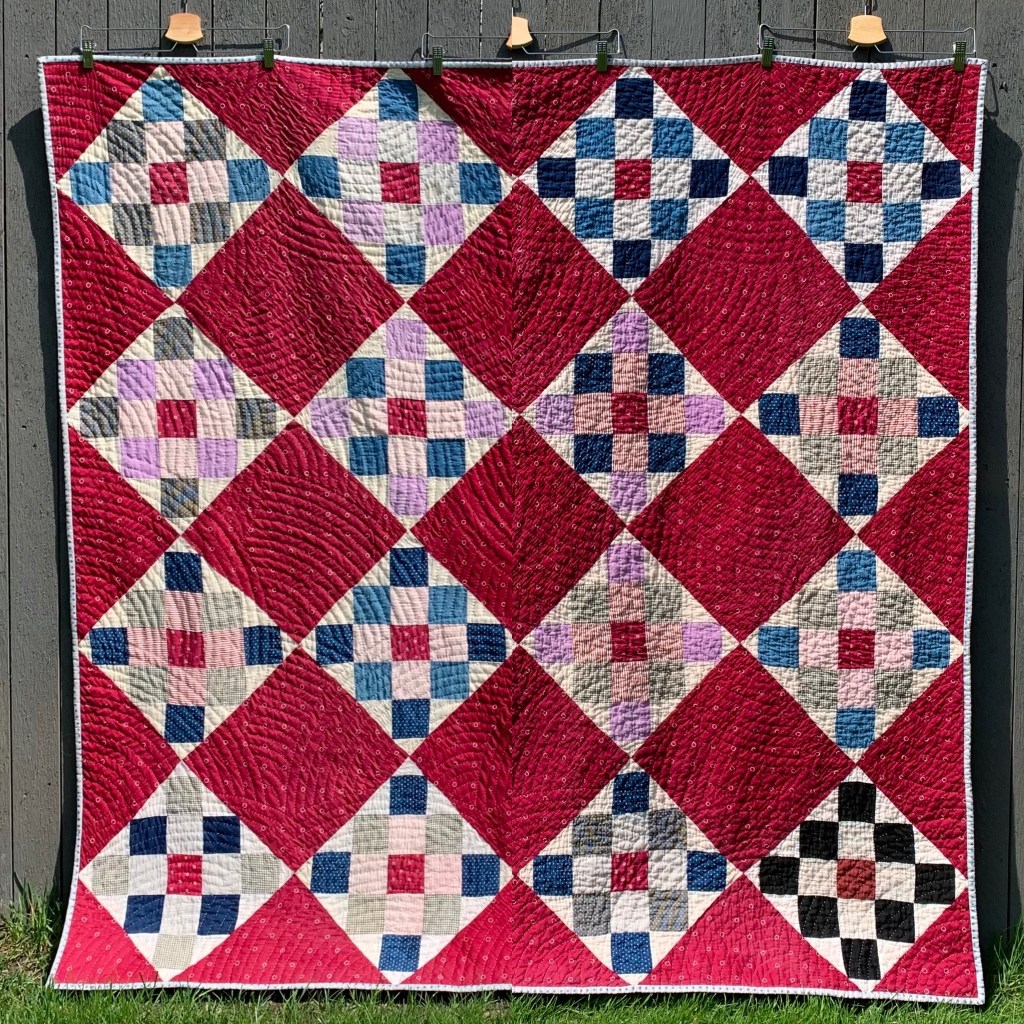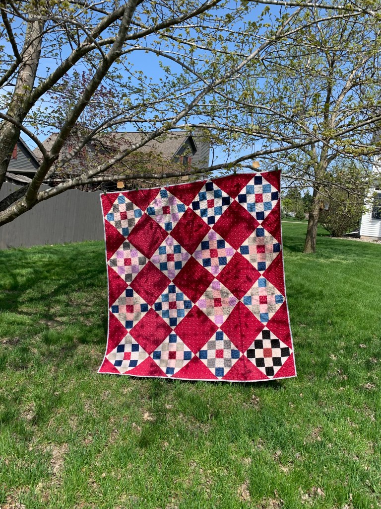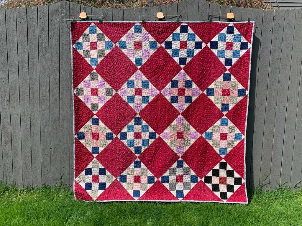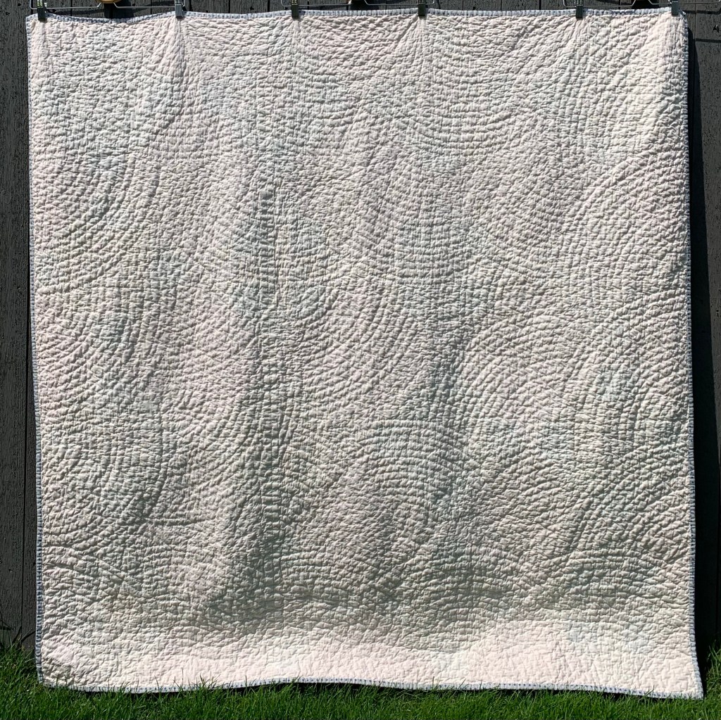 It turned the cream backing into the palest of pinks, but surprisingly, the fabrics in the blocks were unaffected. Washing and drying took the texture up a notch.