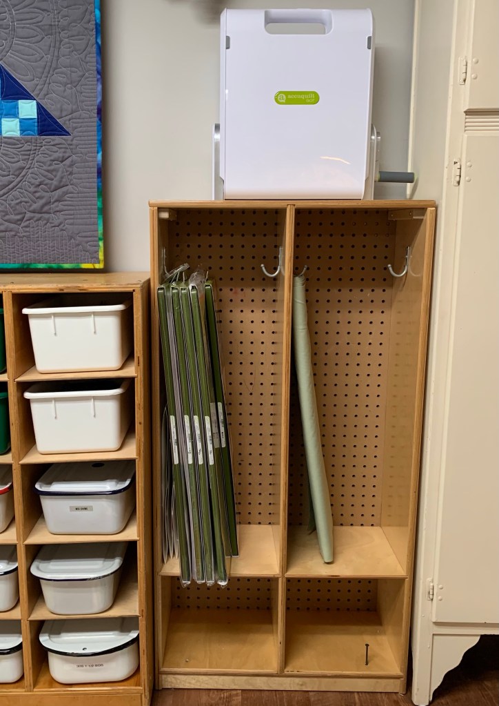 You may recall that I bought a classroom storage unit for my Arizona sewing room. I love it! So when I saw this on FB Marketplace, I snapped it up for my Michigan room.