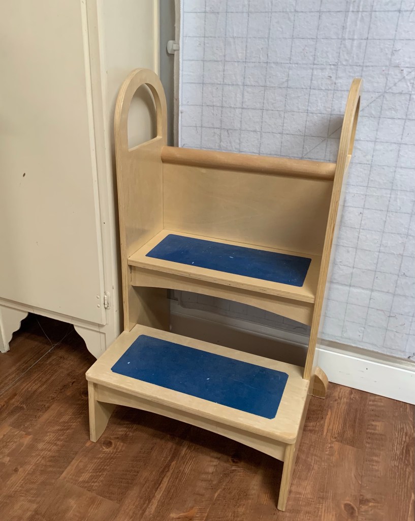 It’s perfect for my long die boards and bolts of fabric. Across the street from that sale, I picked up this step stool.