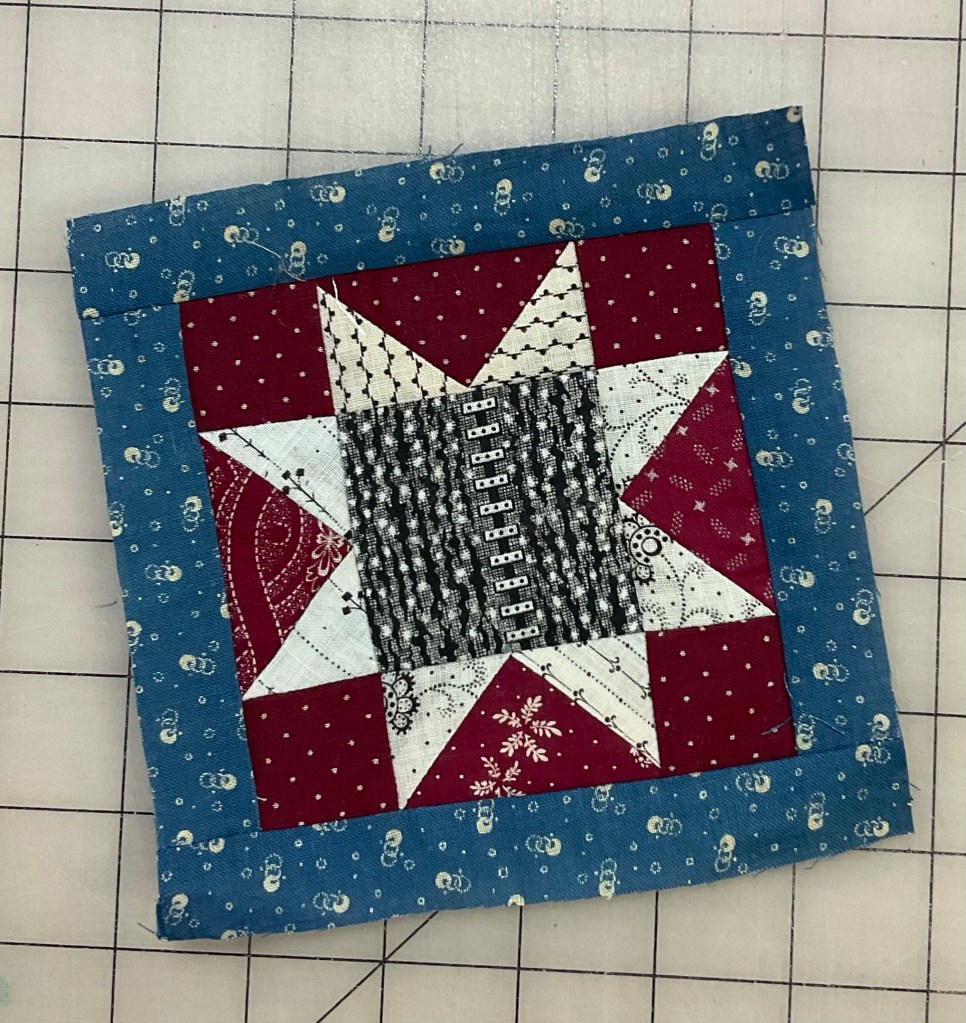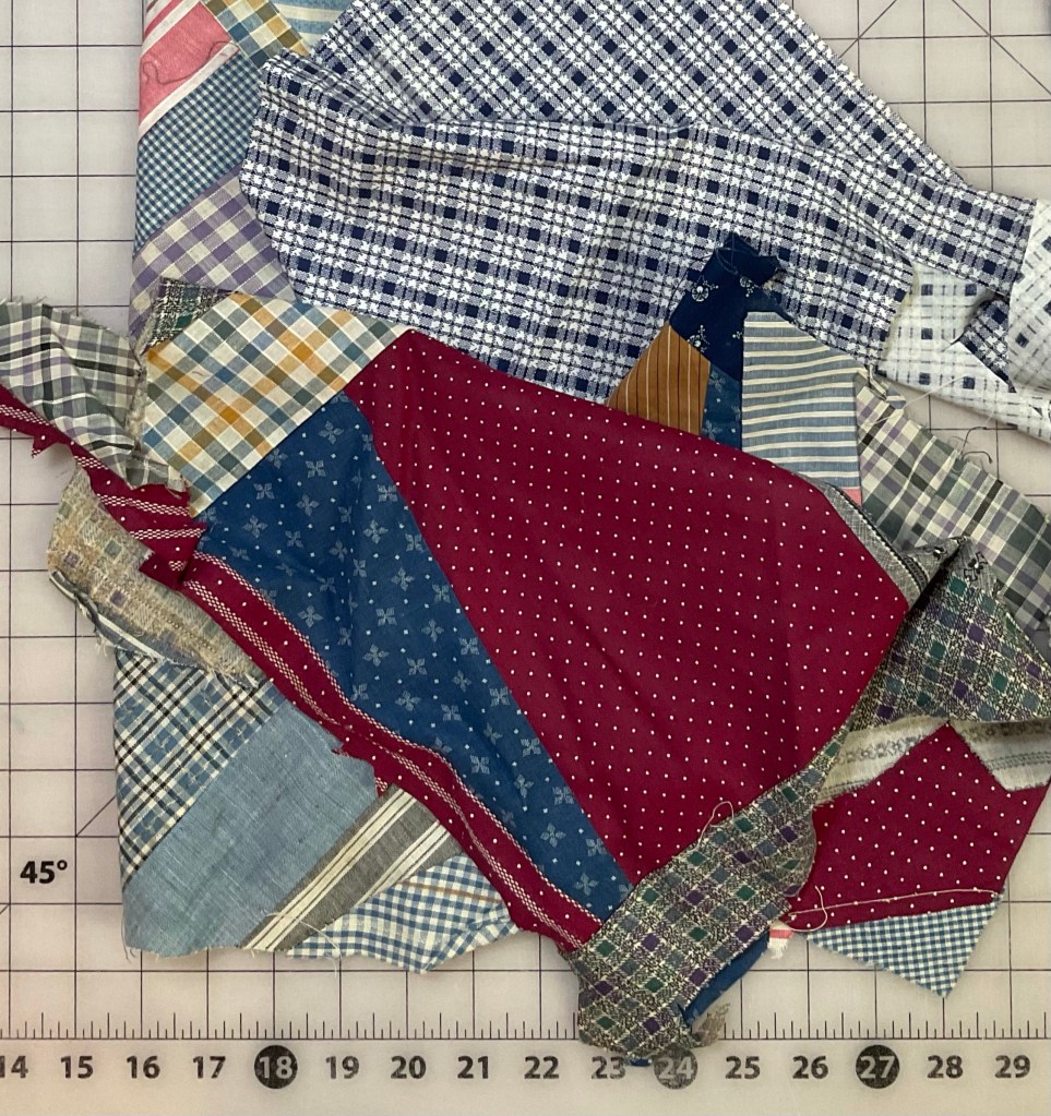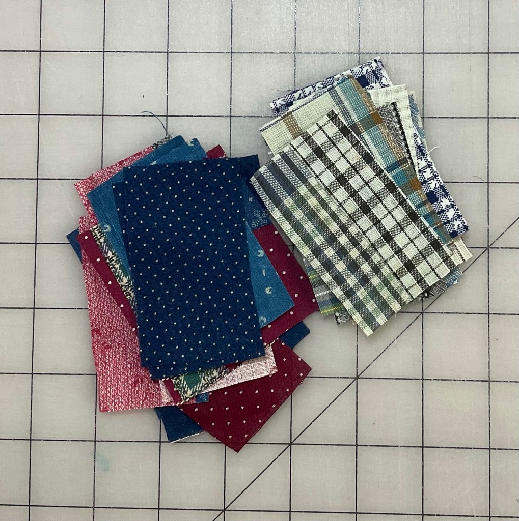 As I was cutting, I remembered this little block I had made some years ago out of pieces from these same vintage blocks. I might be able to include this.