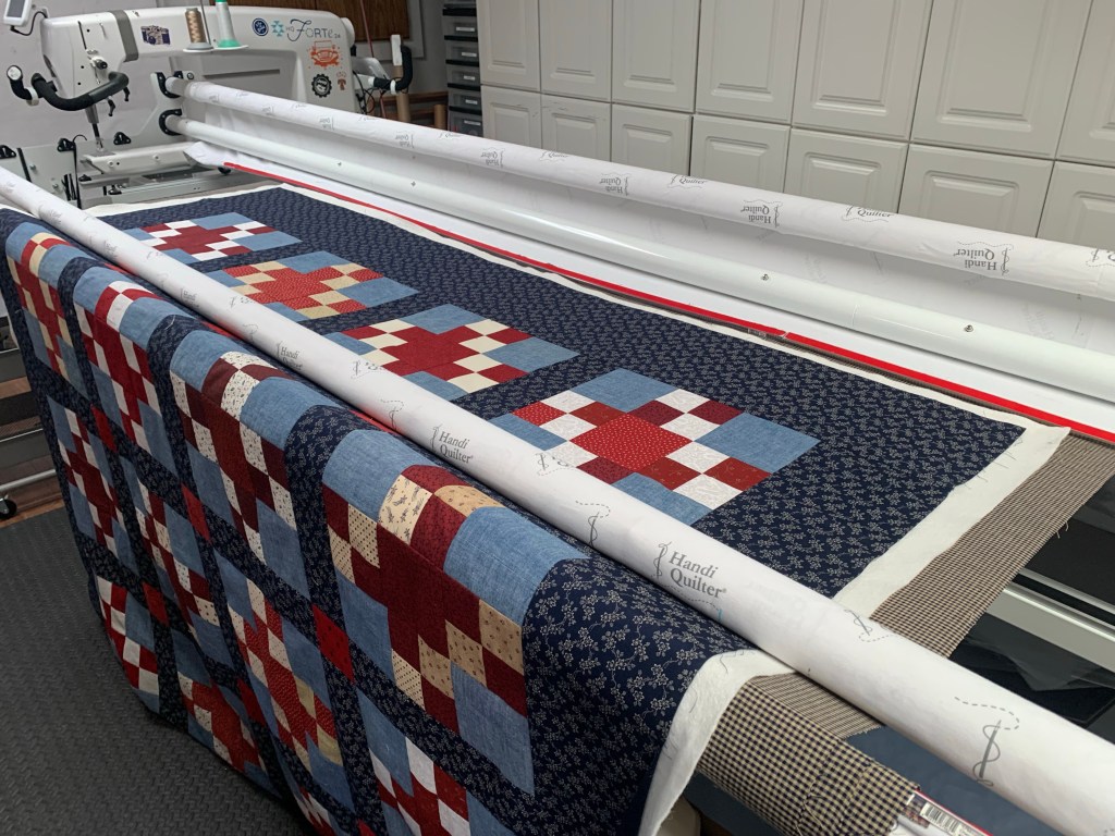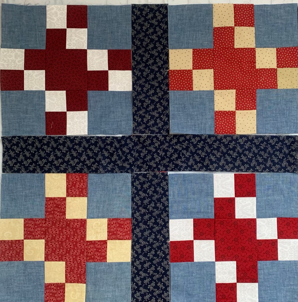 I love this simple block and the sashing and border fabric is perfect.. Looking forward to seeing yours quilted and hung for display.
