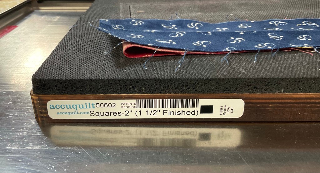 I can cut up to ten layers at a time with my AccuQuilt studio cutter and dies, so I could cut a max of 120 squares in a single pass!