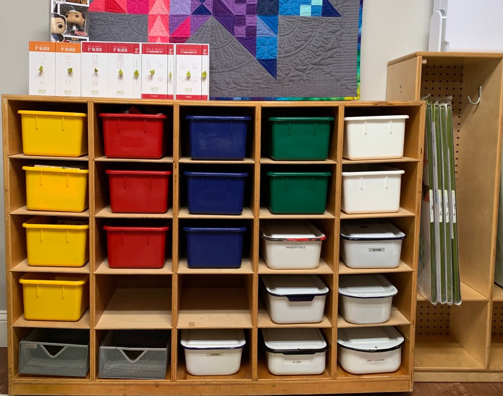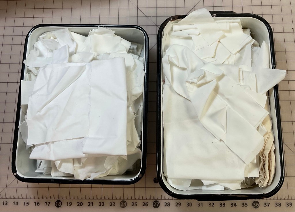I came across these two big bins of white/off white scraps. They are a real mix of shades/manufacturers. Ugh. I don’t want to deal with these, but I hate having them go to waste.