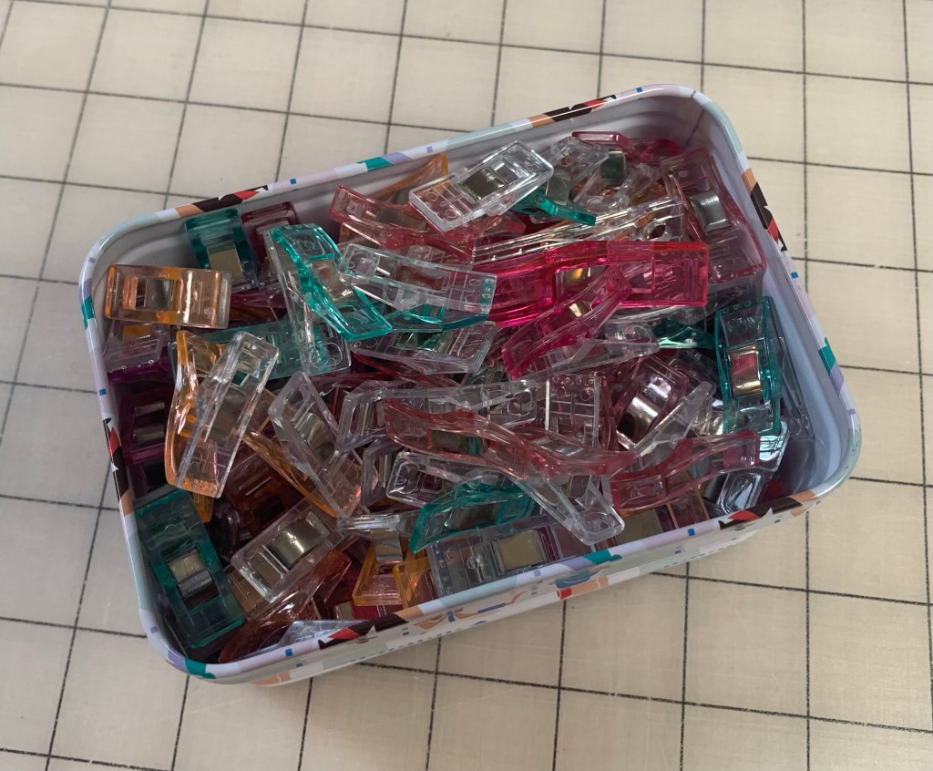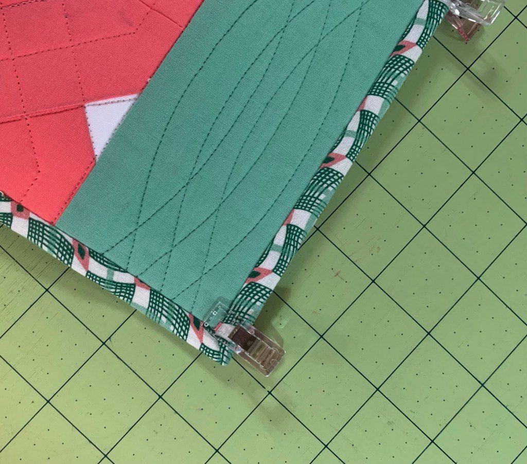 Then I pressed the binding fabric away from the quilt. Turn the quilt over and press the binding, turning under the seam allowance as you go. I have never used these clips before, but they worked really well for this.