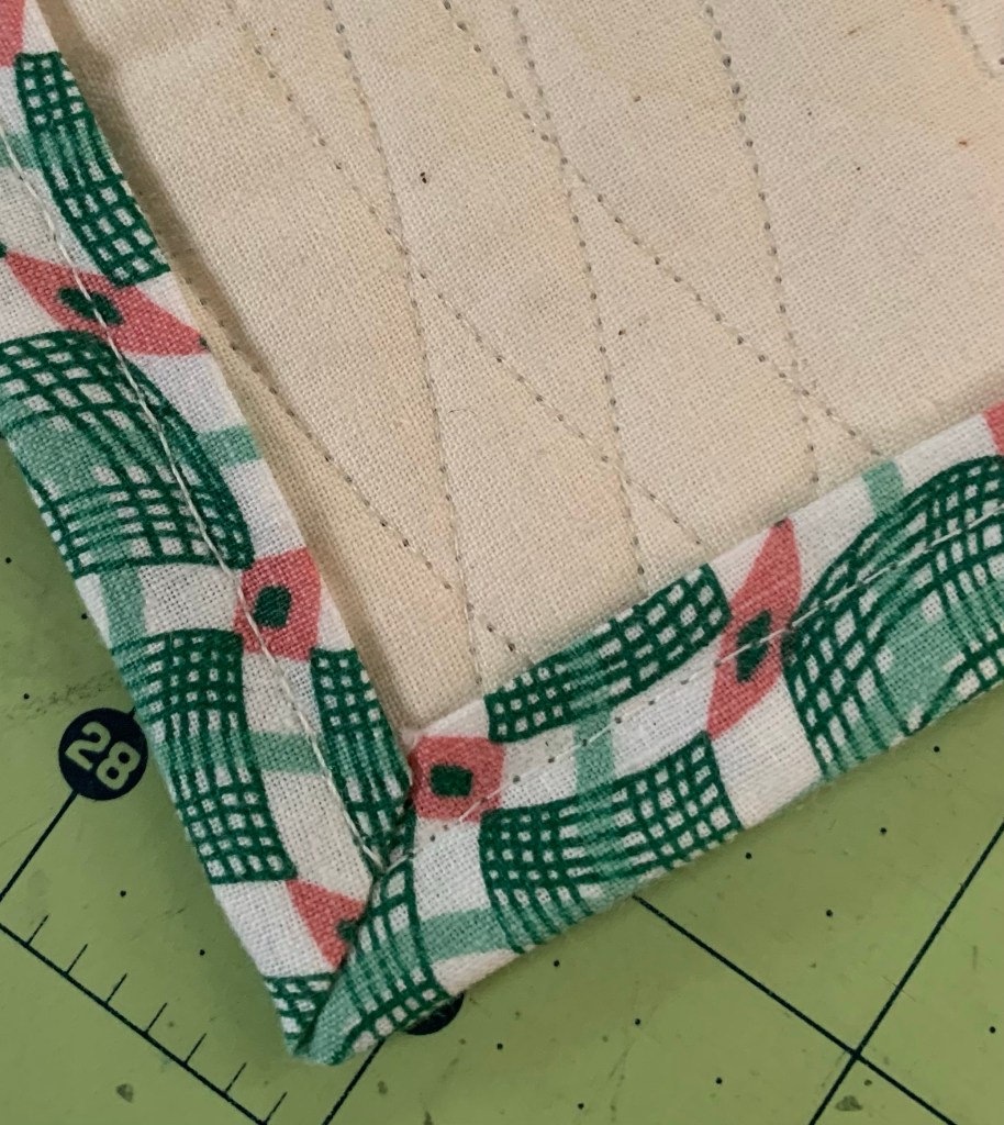 I said yesterday that I would share more about the binding technique I used on this little quilt. I really want to do most of my binding by machine from now on to save my hands. I was pleased with how this method turned out.