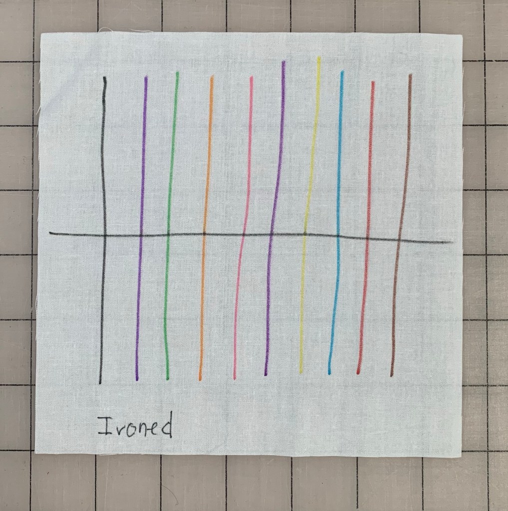 I ironed the bottom half and noted that with a permanent marker. Then I threw this piece in the washer with a load of laundry.