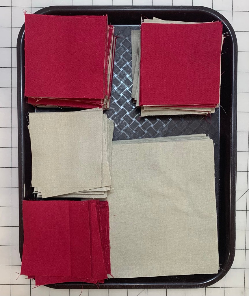 It has 120 6” blocks. There are 40 6 1/2” plain blocks, and 80 4 patches.