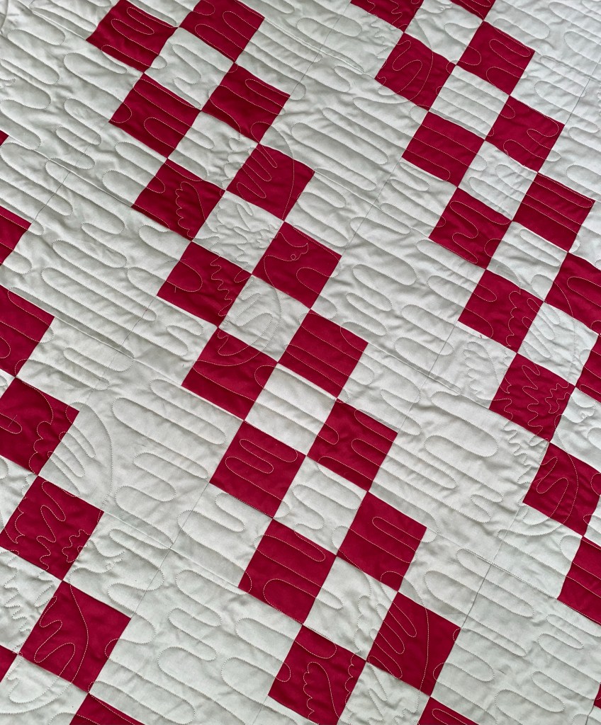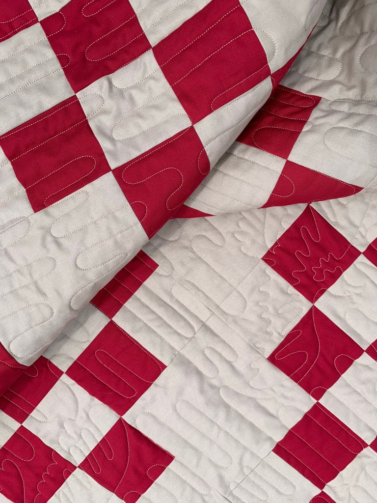 I quilted this on my long arm. The binding was made from leftovers of the backing.