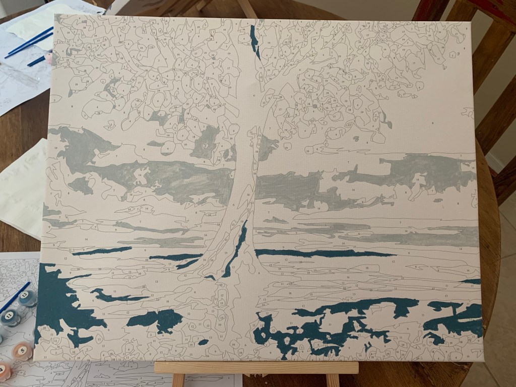 I picked up these paint by number sets a couple years ago. Daughter #2 and I finally started them. This is mine.
