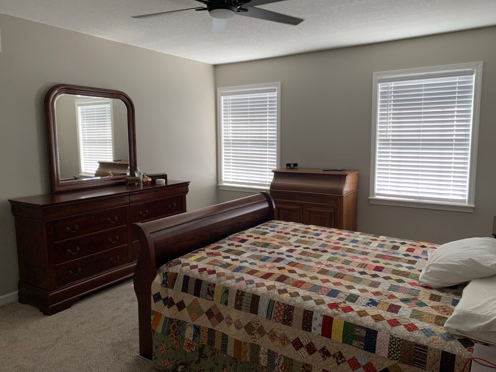 Our bedroom repainting/recarpeting job is complete and the furniture is back in!