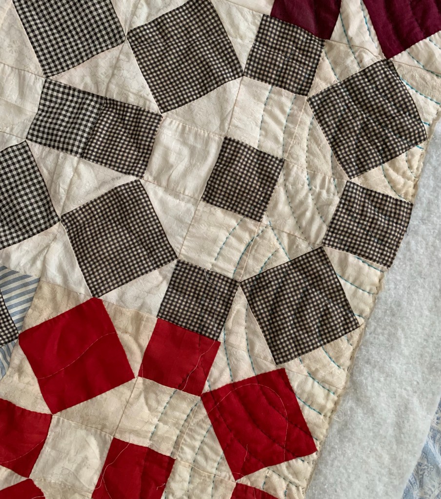 Quilting one fan a day is a struggle too. Here is a look at the back.