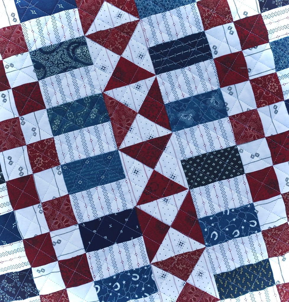 I used shapes 2, 4, and 8. The hourglass units in this little quilt finish at 2 1/2 inches.
